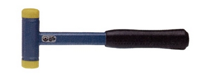 聚氨酯锤头,颜色鲜艳,耐磨。 锤击表面不受损。 锤头内藏铸铁球砂,确保落锤后不反弹。 钢壳,聚氨酯锤头可换头。