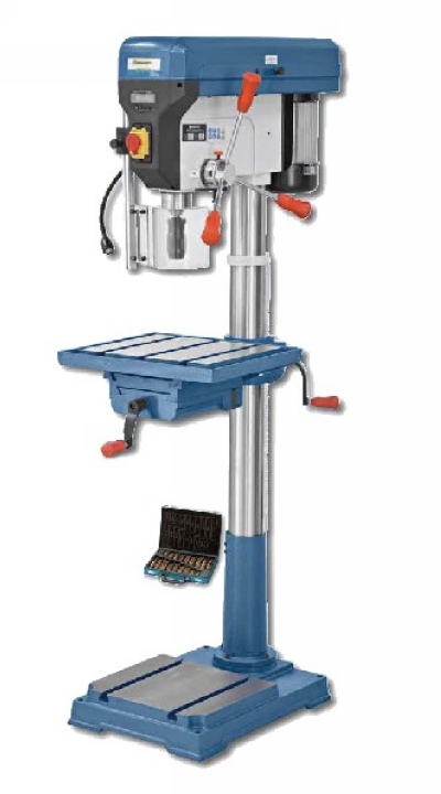 钻孔 max.32mm 夹头 1-16mm/B18 莫氏锥度 MK4 主轴转速 (12)150-2450U/min 倾斜 360° 距离 主轴/桌子 740mm 距离 主轴/底板 1210mm 钻杆 120mm 柱直径 92mm 工作台尺寸/T型槽 455x410mm/18mm 工作区底板 380x335mm 电机功率输出S1 100% 1.1KW/400V 电机功率S6 40% 1.6KW/400V 钻机尺寸(长x宽x高) 450x800x1730mm 重量 138kg