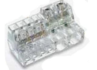 Einpolige Klemme mit 3, 4 und 6 Einführungen, die ideal für den Einsatz im industriellen und privaten Bereich sind.