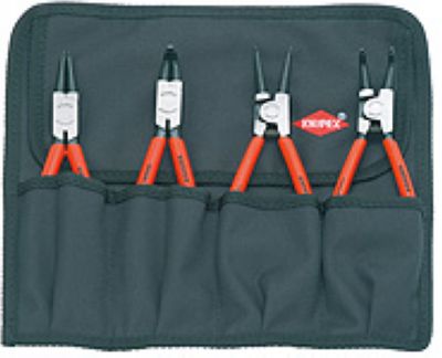 工具包内装有4件卡簧钳,用于装卸内外挡圈;包装材料:聚酯面料44 11 J2 直嘴、44 21 J21 弯嘴、46 11 A2 直嘴、46 21 A21 弯嘴