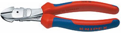 采用锻制的轴,用于重型剪切;适用剪切各种类型的线,包括钢琴丝; 长的斜口钳适用于剪切16mm2以下的铜线和35mm2以下的铝线;省力21%,长度250,头部镀铬,双色双重材料手柄