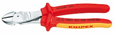 采用锻制的轴,用于重型剪切;适用剪切各种类型的线,包括钢琴丝; 长的斜口钳适用于剪切16mm2以下的铜线和35mm2以下的铝线;省力21%,长度200,头部镀铬,双色双重材料手柄