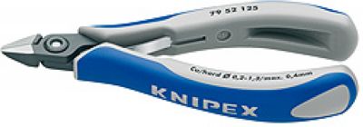 精密钳子,用于超精细的装配工作,如电子业和精密仪器业;精密磨削的锋利剪切刀口,带小偏刃的用于精密元件的精确剪切;无偏刃的用于齐根剪切;剪切刀口附加感应淬火,硬度约为64 HRC;采用螺丝铰接:可进行精确、无间隙的操作;精细的抛光铰接面,便于沿整个开口范围进行光滑、低摩擦的移动;低摩擦双弹簧,适合缓和平稳地开启钳口;非反光表面,重量轻;优质滚珠轴承钢锻造;尖头,带小偏刃;长度125,头部抛光,双色双重材料手柄