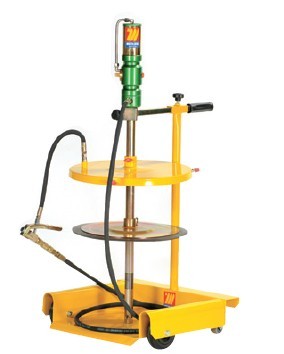 用于50kg油桶,配有: 气动黄油泵1:60 四轮手推车 桶盖?420mm 随动板?400mm 铠装软管5m,G2” 带管油枪