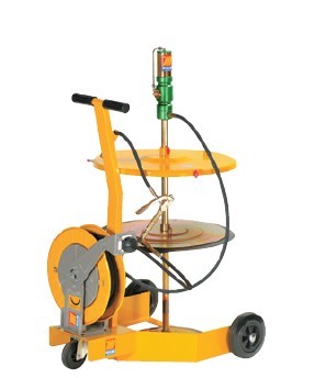 用于200kg油桶,配有: 气动黄油泵1:70 三轮手推车 桶盖?600mm 随动板?590mm 铠装软管1.5m,G2” Z型转接头 带管油枪 黄油软管卷盘18m,G1/4”