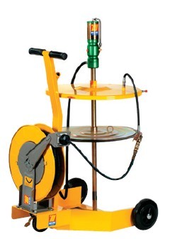 用于200kg油桶,配有: 气动黄油泵1:70 三轮手推车 桶盖?600mm 随动板?590mm 铠装软管1.5m,G2” Z型转接头 带管油枪 黄油软管卷盘18m,G1/4”