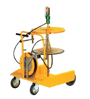 用于200kg油桶,配有: 气动黄油泵1:60 四轮手推车 桶盖?600mm 随动板?590mm 铠装软管1.5m,G2” Z型转接头 带管油枪 黄油软管卷盘10m,G1/4”