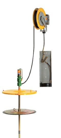 用于200kg油桶,配有: 气动黄油泵1:60 黄油软管卷盘10m,G1/4” 桶盖?600mm 随动板?590mm 黄油管1.5m Z型转接头 带管油枪 接油盘