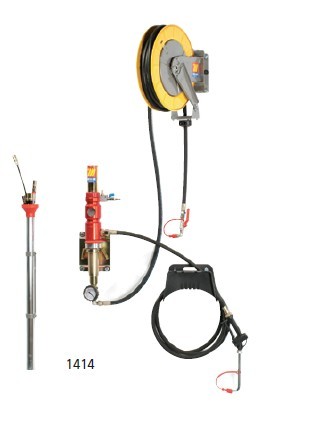 | ME1416 | 配有: 支撑柱 气动双动膜片式泵 墙装托架 10m G1/2”软管卷盘 9件导管组套 ?12mm导管 墙装导管架 1.5m G1/2”连接管 4m吸油管 |