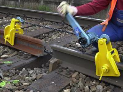 纵向把两个钢轨拉到一起