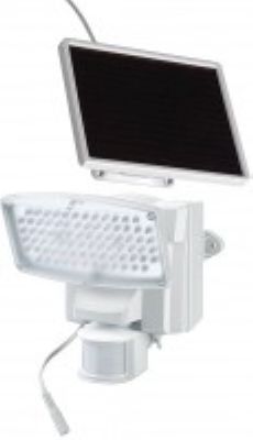 Solar lamp with motion detector and separate solar module. 80 bright LEDs for illumination of large areas. Pivoting solar lamp. Pivoting infrared motion detector with max. 180° detection angle and max. range 12 m. Switch-on time adjustable to a max. of ap