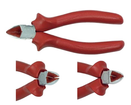 用于断切软线和高碳钢丝,材质:C 60, 钳口淬火硬化处理,有塑料把手 防止线端切掉