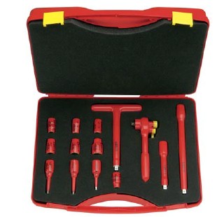 依照IEC 60900:2004 双层安全绝缘 1000 V,有塑料箱 两撞色衬里 3/8”工具