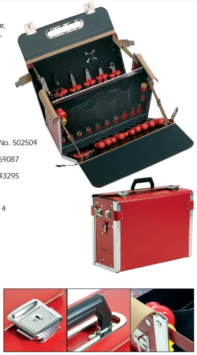 电工绝缘工具 红色皮箱,双开,金属包边 包内分多层,经典牛皮