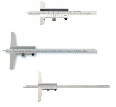 由不锈钢制成,高精度激光刻线,亚光镀铬 用于方便的测量150mm以下直径大孔和宽槽内各点的深度 测深范围500mm以内 不锈钢材质,两面刻度,激光刻线,表面亚光镀铬 尺框可移动,用两个锁紧螺钉定位。深度主尺亦配有锁紧螺钉 配有两种侧头,可测量内孔沟槽的宽度、深度、孔口和凸缘厚度 德国DIN862标准产品