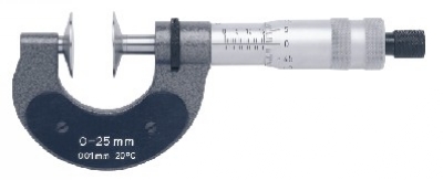 用于测量齿间距和中心齿轮: 刻度亚光镀铬 主轴不能旋转 碟形硬金属平行测砧 棘轮摩擦测力 大于25mm的外径千分尺配有校对量杆 分度值:0.01mm