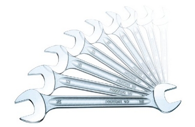 DIN 3110 开口偏左15°,空间狭小,作业对象螺栓螺母。 角度不合适时,将开口扳手翻过来使用。 手柄两面凹,剖面为双T型结构,抗弯强度大,显著减轻自重。 干活轻松,铬合金钢材质,调质热处理,表面亚光镀铬。