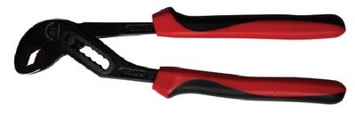 水泵钳和管钳合二为一,自动夹持; 双色塑料手柄,防滑,方便施力; 快速调整,钳口狭长。